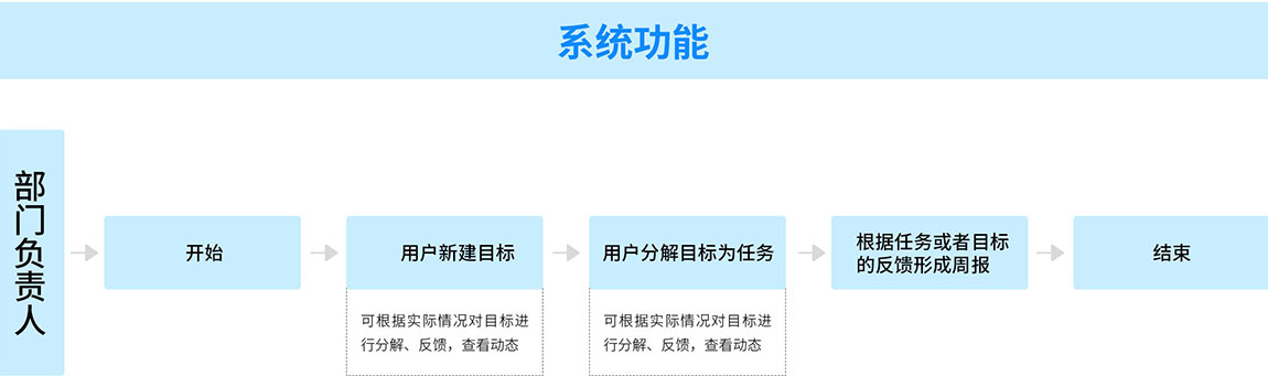 該系統(tǒng)是是為了保證公司總部科技系統(tǒng)的年度指標的有效落實,進一步加強業(yè)務部i門的業(yè)務執(zhí)行指標的過程,完善指標分配機制,實現(xiàn)目標和任務的拆解到部門,到個人,方便實現(xiàn)工作的量化。我們將系統(tǒng)分為目標管理、任務管理、周報管理三大部分。